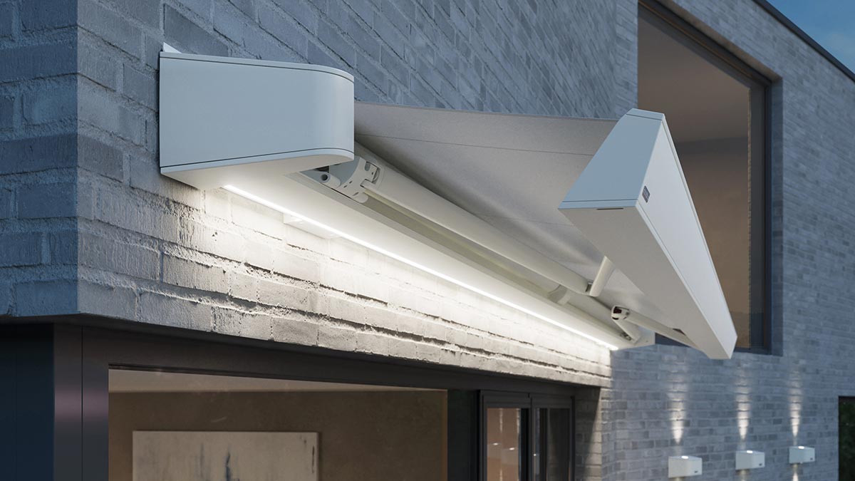 Die Optik einer Kassettenmarkise mit der Leichtigkeit der Halbkassette. Die rund geformte Schale bietet Schutz für das Markisentuch und lässt sich individuell anpassen.